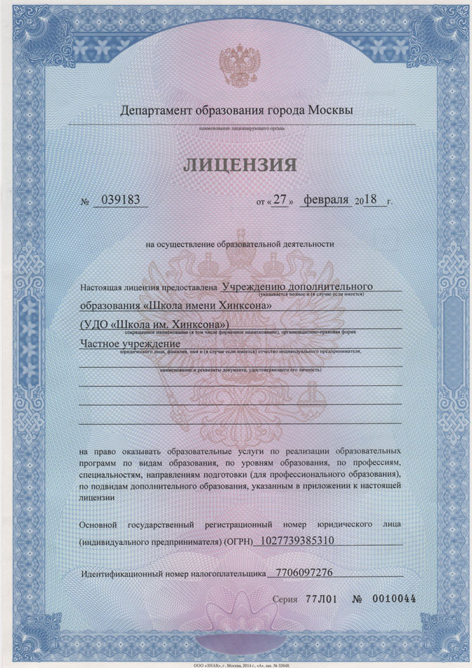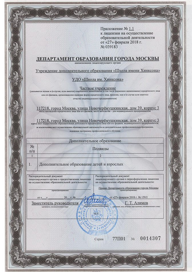 УДО «Школа им. Хинксона» реализует дополнительные общеразвивающие образовательные программы.